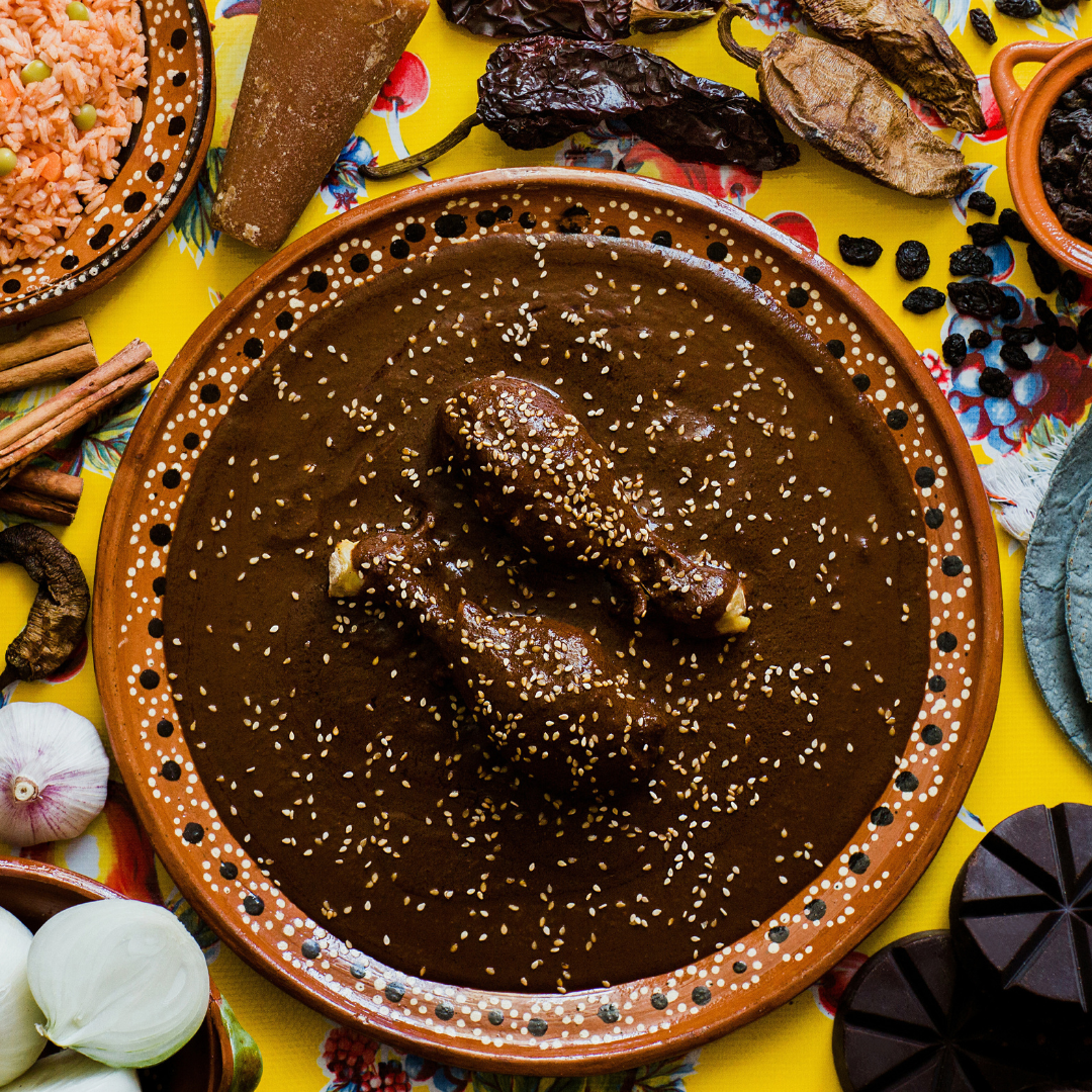 Our Poblano Mole Sauce is a rich, complex, and thick sauce made with dried chiles, chocolate, seeds, nuts, and warm aromatic spices. It’s the ultimate comfort food—deeply flavorful and perfect for chicken, enchiladas, or special gatherings.
